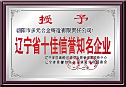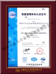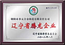 公司于2001年通過IS9001-2000質(zhì)量管理體系認(rèn)證,生產(chǎn)的多元牌高錳鋼鑄件于2005年榮獲"遼寧省名牌產(chǎn)品"稱號。